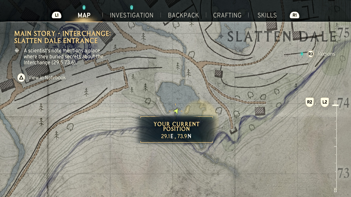 Continue east and then south until you reach a large, shallow pond at the coordinates (29.1E, 73.9N) on your map. There you should see an Outlaw corpse lying on a rocky outcrop in the middle of the pond. Be careful as there’s a swarm of carnivorous leeches lurking in the water that will nip at your heels if you linger too long.